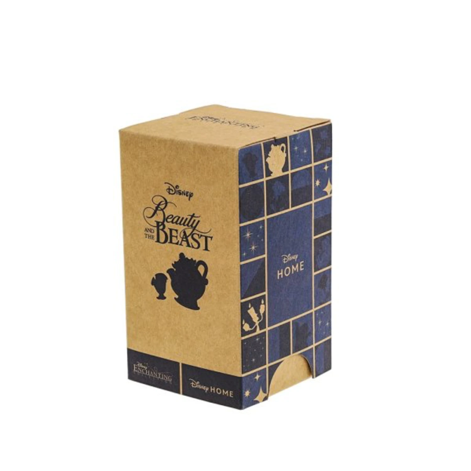 This delightful wooden decoration that captures the essence of Disney’s classic Beauty and the Beast film. This glass dome, decoration encases all the loyal servants from the enchanted castle itself, including Cogsworth, Lumiere, Mrs Potts and most importantly everyones favourite Chip. The gold ribbon feature allows you to hang this special ornament all year round as well as Christmas tree. This classic vintage style, decorative Kloche will make a stunning display in your home.